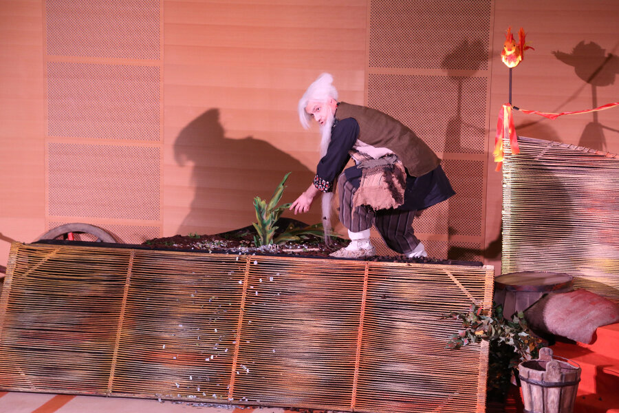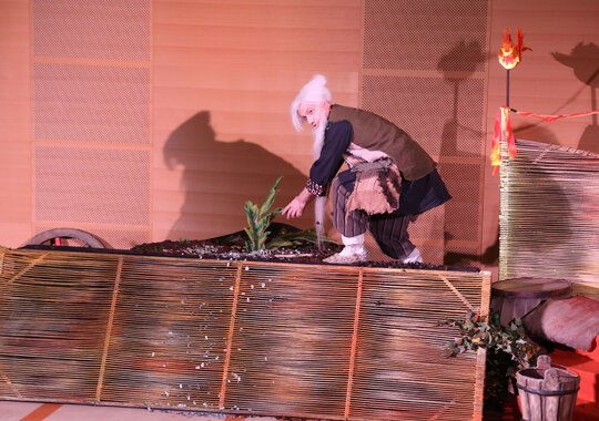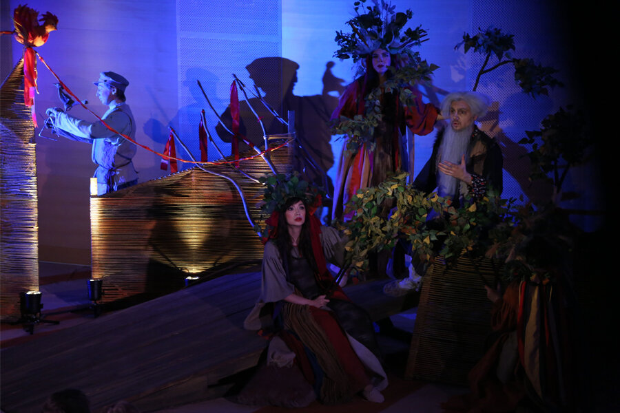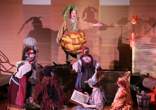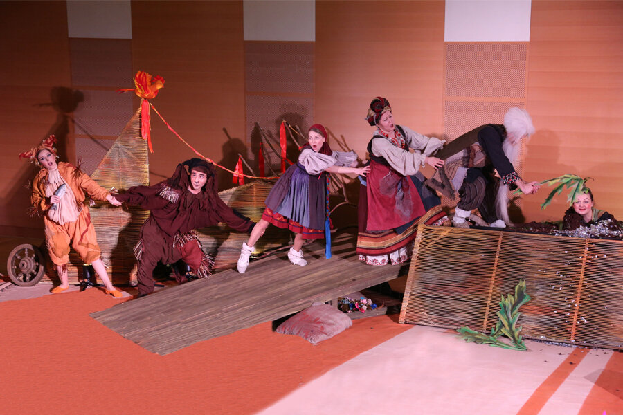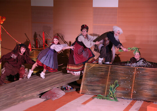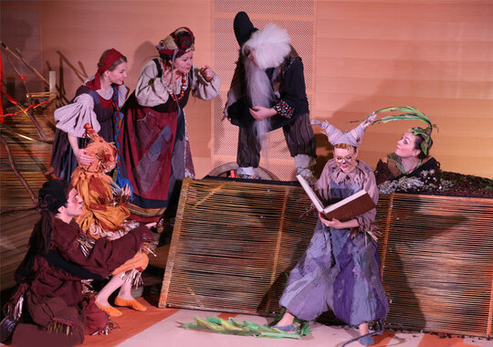В сюжет всем с детства знакомой сказки были внесены небольшие дополнения. Помимо основных персонажей на сцену выйдут Берёзонька, Липонька и Осинушка, Соловушко и Скоморох, который будет рассказчиком. Среди инструментов, использованных автором, треугольник, коробочка, ложки, трещотка и балалайка.