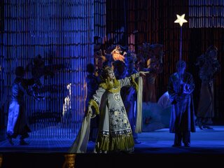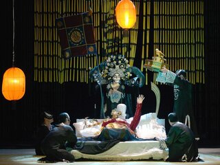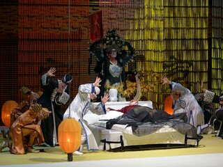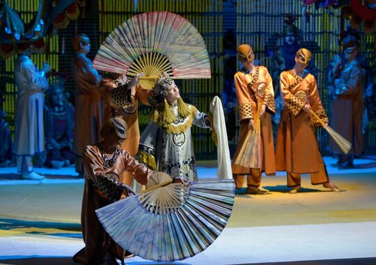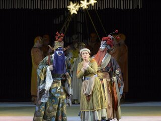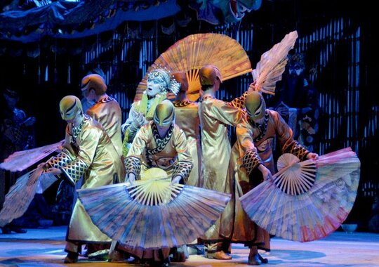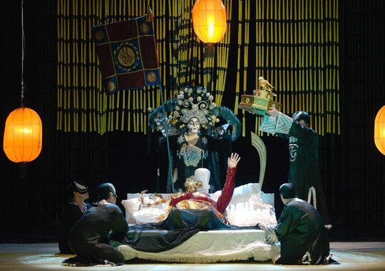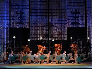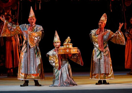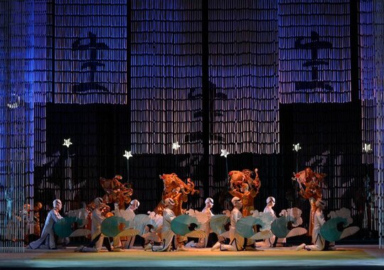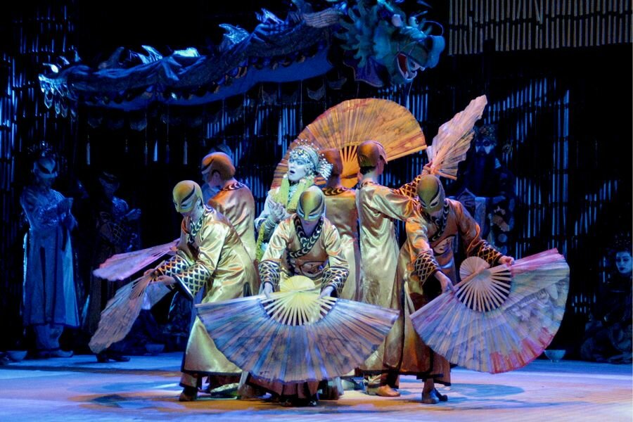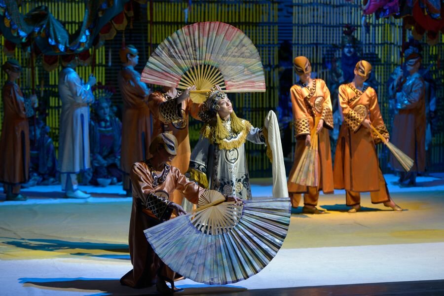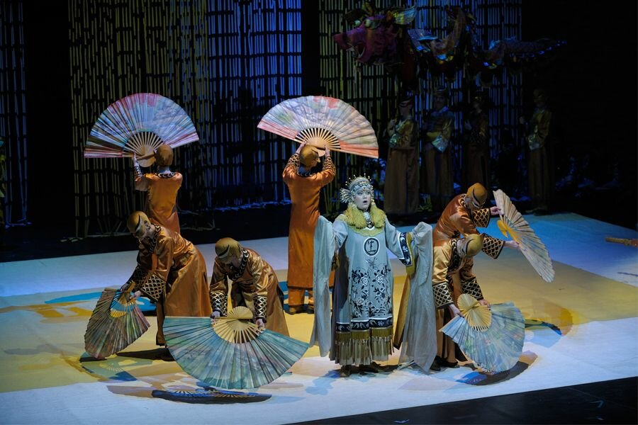 Опера Игоря Стравинского. Сопровождается синхронными титрами на русском и английском языках. Действие происходит в Китае в сказочные времена. Действие первое: Берег моря, предрассветный час. Рыбак в лодке поёт песню и слушает трели соловья. Прекрасное пение заставляет его забыть о своих горестях. На берег приходят придворные. Они горят желанием услышать чудесную птицу, о которой им столько рассказывала Кухарочка. Сам Император, узнав о том, какой прекрасный певец скрывается в его лесах, приказал найти его и доставить во дворец. Мычит корова, квакают лягушки — придворные принимают все эти звуки за пение соловья, но Кухарочка разубеждает их. Вельможи обещают сделать Кухарочку личным поваром Императора, лишь бы им удалось найти птицу. Наконец прилетает Соловей. Он охотно соглашается отправиться во дворец и спеть для Императора. Действие второе: Слуги украшают дворец праздничными фонариками. Кухарочка рассказывает всем о Соловье: он маленький и невзрачный, но от его пения на глаза наворачиваются слёзы. Появляется торжественная процессия, слуги вносят сидящего под балдахином повелителя Поднебесной. Соловей поёт, и его прекрасные трели очаровывают Императора. Он хочет наградить певца золотой туфлей, но тот отказывается: лучшая награда для него — слёзы на глазах слушателей. Прибывают японские послы. Они дарят Императору своего соловья — искусственного. Тот без устали может повторять одну и ту же мелодию множество раз. Пока все восхищённо слушают механическую птицу, живой соловей улетает. Император в возмущении объявляет его изгнанным из Китая, а японского соловья назначает «императорского столика ночного первым с левой стороны певцом». Действие третье: Ночь. Император тяжело болен, в его покои является Смерть. У неё на голове корона Императора, в руках — его сабля и знамя. Возникают призраки былых дел, они настойчиво напоминают о себе. Император хочет заглушить их навязчивые голоса и зовет музыкантов, но внезапно прилетает Соловей. Очарованная его прекрасной песней, Смерть отдаёт Императору обратно корону, саблю и знамя. Она исчезает, и к Императору возвращаются силы. Повелитель Поднебесной хочет щедро отблагодарить своего спасителя, но Соловью не нужна награда. Он обещает прилетать во дворец каждую ночь и петь для Императора. Придворные, пришедшие почтить память своего правителя, застают его живым и здоровым. Издалека доносится песня Рыбака. Спектакль идёт без антракта.