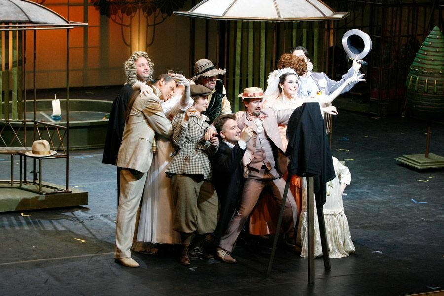 «Свадьба Фигаро» — это комедийный спектакль, весёлое праздничное представление с переодеваниями и разрастающейся до хаоса путаницей; порой только желание не упустить ни одной моцартовской ноты удерживает зал от взрывов хохота. Но гений композитора придает происходящему в севильском замке безумству потаенную глубину. В первой сцене Фигаро линейкой измеряет габариты комнаты; ко всему, что зритель увидит далее, Моцарт применяет другую, невидимую шкалу. По ней оценивается высокое и низкое, и ее градации тонки и противоречивы. Результаты получаются неоднозначные: если приложить эту «линейку» к социальной иерархической лестнице, то граф окажется наверху, Фигаро — внизу, если же попробовать измерить душевные качества героев — скорее наоборот. Так же ставится вопрос о чести и честности: один готов убить за свою честь, но сам бесчестен, другой громоздит обман на обмане, но чести не теряет. При всем своем родстве с масками комедии дель арте персонажи «Свадьбы Фигаро» — живые люди, и их «показатели» на шкале высоты и низости, благородства и плебейства способны кардинально меняться, так что даже завистливая интриганка может преобразиться в заботливую мать, а распутный ловелас — в любящего мужа. Живыми — настоящими, чувствующими — героев делает моцартовская музыка.