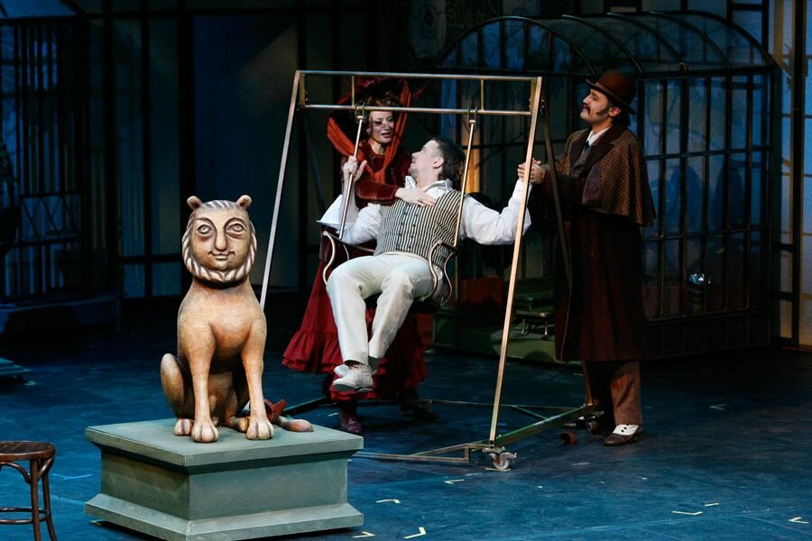 Круговое пространство Концертного зала ставит перед постановщиками особые задачи. В «Свадьбе Фигаро» они решены с изящным остроумием: зритель как будто рассматривает трехмерную модель дома, заглядывая в него с разных сторон. Спектакль идёт на русском языке, что делает его доступным и ещё более увлекательным.