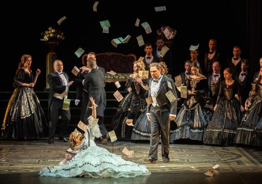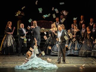 И если слово «травиата» в переводе с итальянского значит «падшая», то опера «Травиата» — это история о том, как человека возвышает любовь. Такие смысловые контрасты становятся точкой опоры в водовороте чувств, в который погружает зрителя замечательный спектакль.