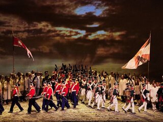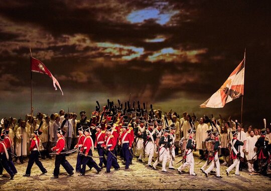 (Театр сделал некоторые сокращения для данной постановки оперы «Война и мир» по сравнению с полной версией композитора. Ряд сцен опущен).
