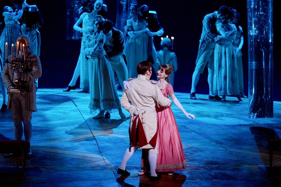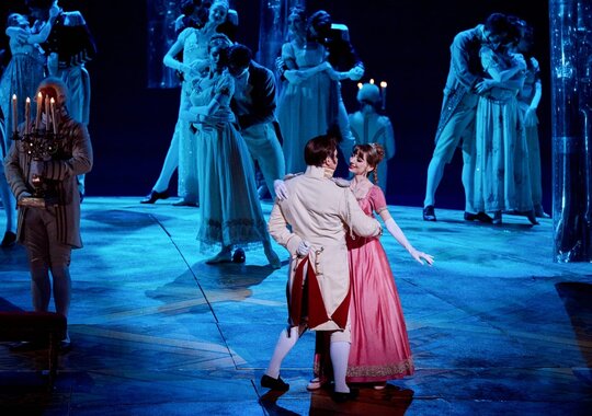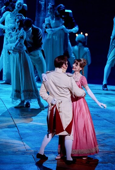 Москва. Бал у екатерининского вельможи. Граф Ростов привозит Наташу и свою племянницу Соню. Съезжаются гости. Среди них Пьер Безухов с женой — красавицей Элен и её брат Анатоль Курагин. Полонез сменяется мазуркой, затем объявляют вальс. Замирающей от волнения Наташе, впервые попавшей на настоящий бал, кажется, что никто не замечает её, что она так и не будет танцевать. Граф Пьер Безухов, понимая, что творится в душе девушки, обращается к князю Андрею с просьбой пригласить Наташу на вальс. Тот восхищён робкой грацией этой «совсем особенной» девушки, его всё больше привлекает юная восторженность Наташи. «Он предложил ей тур вальса…». «Давно я ждала тебя», — как будто сказала эта испуганная и счастливая девочка своей просиявшей из-за готовых слез улыбкой, поднимая свою руку на плечо князя Андрея». После вальса с Наташей неожиданно для самого себя князь Андрей загадал: «Ежели она подойдёт прежде к своей кузине, а потом к другой даме, то она будет моей женой». Наташа подходит к кузине.
