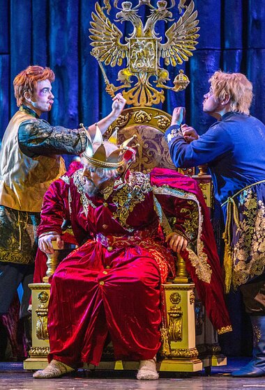 Новая постановка театра «Санктъ-Петербургъ Опера» — поистине зрелищный спектакль с изысканными декорациями и костюмами, созданными народным художником России Вячеславом Окуневым. Каждый элемент сценографии тщательно продуман и создает уникальную атмосферу, способную погрузить зрителя в мир волшебства и иронии.