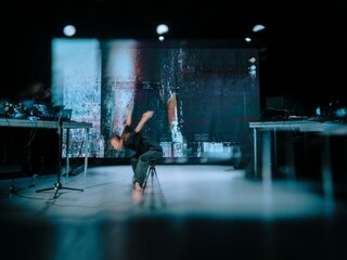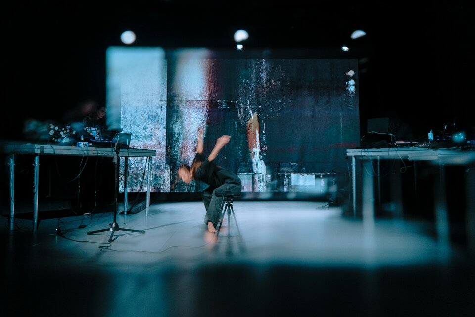 «Медиаплэйс» — это формат перформативных импровизаций, объединяющих звук, движение и цифровое искусство в интерактивном пространстве.