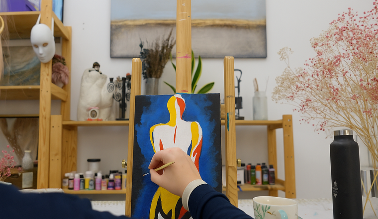 Арт-вечер в мастерской: интерьерная картина с золотом