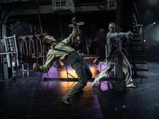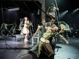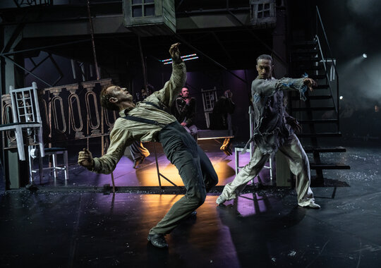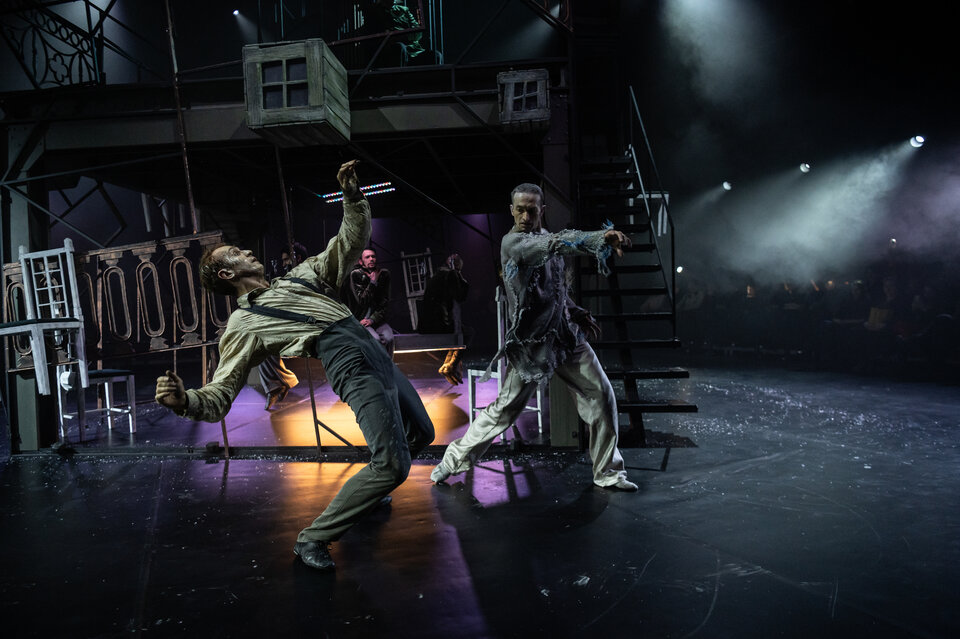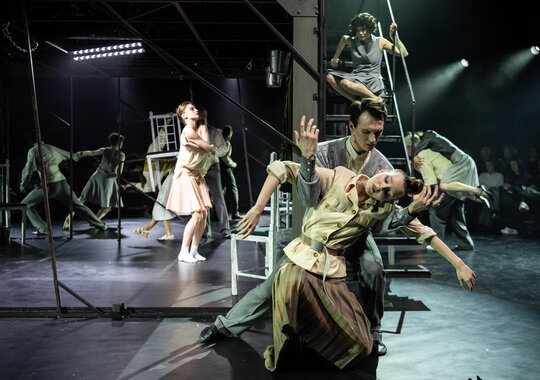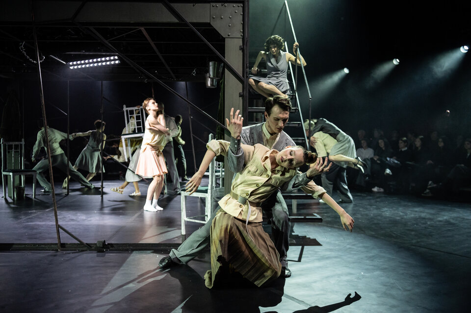 «Идея соединить Гоголя и театр Мейерхольда появилась, когда мы работали над концепцией декораций. Мы интуитивно пришли к эстетике конструктивизма и подумали, почему бы не перенести действие в 1920-е? Родилась идея: а что если режиссёром в нашем спектакле будет сам Мейерхольд? Ведь мы играем на сцене, названной в его честь, да ещё в год его 150-летия. Да, он не ставил «Шинель». Но эта фантазия рождает многослойность ассоциаций: роль движения в «биомеханике», наш поиск в соединении драмы и танца, первая любовь Башмачкина, последняя любовь Мейерхольда, время НЭПа и наше желание дать этой истории другой финал.
