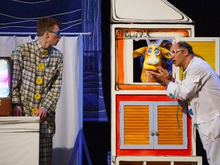 Доктор Айболит в этом спектакле, как и в сказке Корнея Чуковского, конечно же, очень добрый. А ещё странный… И не только потому, что понимает язык зверей. Ему совершенно безразличен комфорт, ему достаточно солнца над головой и, конечно, чтобы все были здоровы.Конечно же, появится и Бармалей — а как же без него? Устроит настоящий шурум-бурум, но в конце спектакля обязательно попросит прощения и станет хорошим.