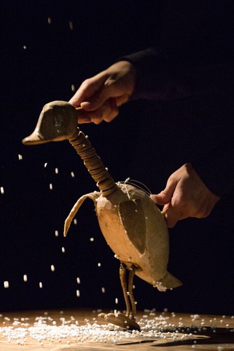 Спектакль оригинален тем, что все те 40 минут, которые он длится, на сцене актеры не произнесут ни одного человеческого слова, тем не менее, все и так будет предельно понятно и увлекательно. Куклы выглядят очень реалистично, и даже будут купаться в настоящей воде, что вызовет неподдельный восторг у маленьких зрителей.