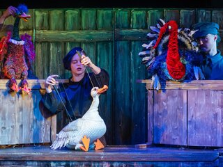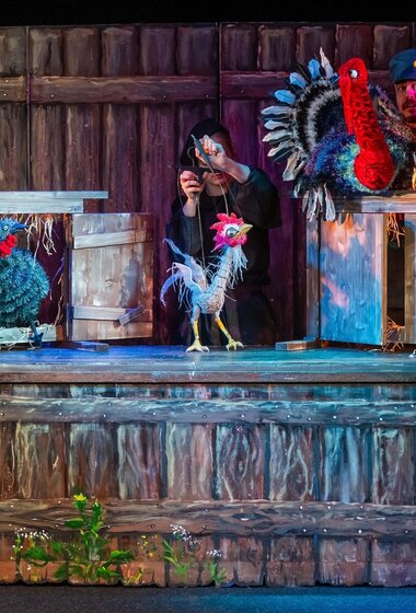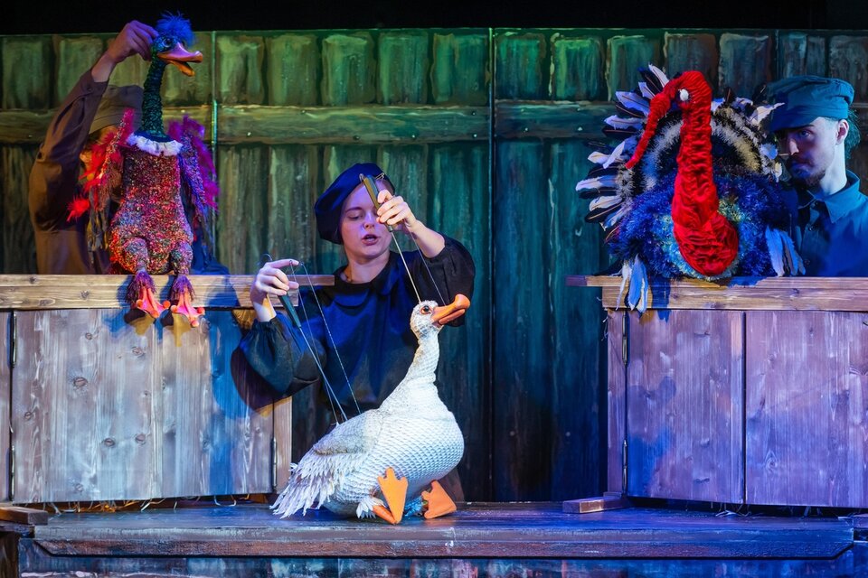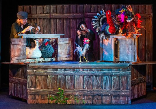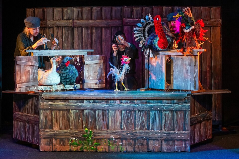События нового спектакля повествуют о мужестве петуха с боевым именем Али-Баба и отваге цыпленка по имени Цыпа, преградивших дорогу на птичий двор злобным бродячим псам.