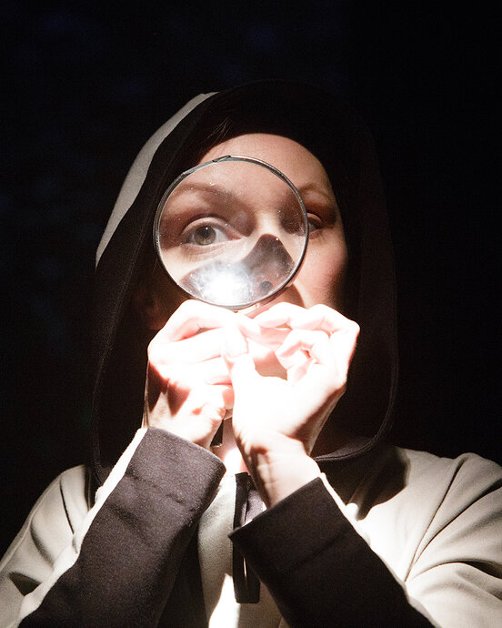 Яна Тумина: «Особый ребёнок — это особый мир. Мы пугаемся этого мира, потому что мало о нём знаем. «Колино сочинение» — спектакль о том, как рождаются стихи, о пути вдохновения в душе человека, о любви, которая рождается в воображении и становится жизнью. Мои причины делать этот спектакль, кроме вдохновения от текстов… Мой третий малыш родился с таким же диагнозом как у Коли. Я знаю, что мир этих детей дремлет в каком-то волшебном закрытом доме. Коля, благодаря своему поэтическому дару, держит этот дом открытым. Мне важно, чтобы люди совершили открытие, заглянув в мир особых детей. Он красив и прост. Необычен и парадоксален. Я не сторонний наблюдатель. Я участник этого волшебного мира».