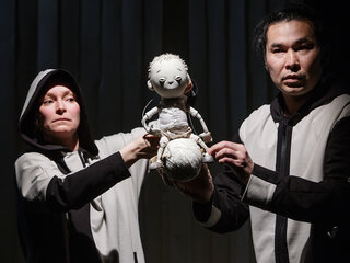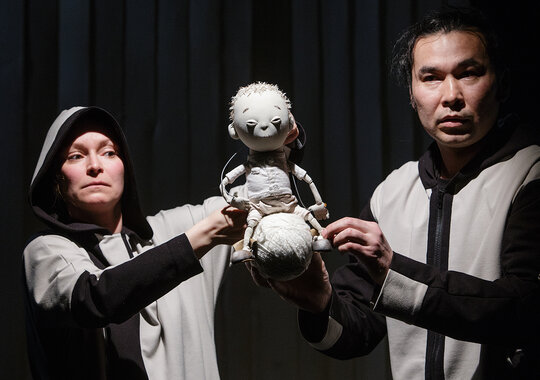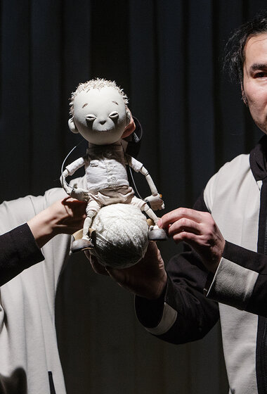 «Колино сочинение» — спектакль Яны Туминой по мотивам книги Сергея Голышева «Мой сын — даун». Спектакль для детей и взрослых о путешествии, небе, пирожках, оленях, фломастерах, снеге, родителях, доброте, счастье, Варе.