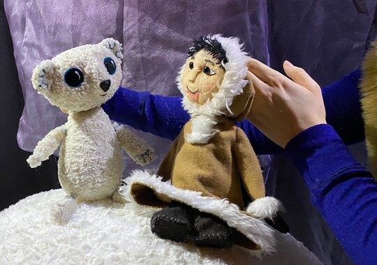 Маленький медвежонок встречает Ненку: девочку из племени северного народа.