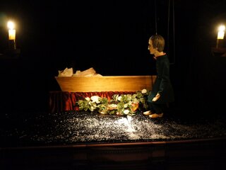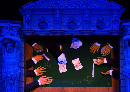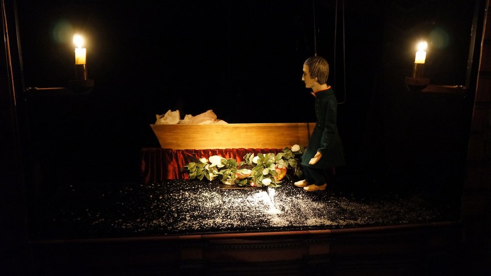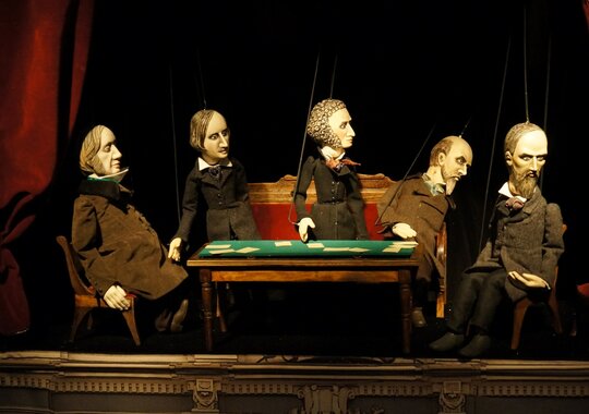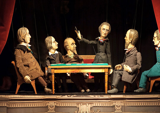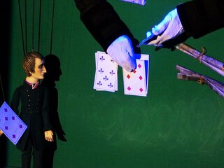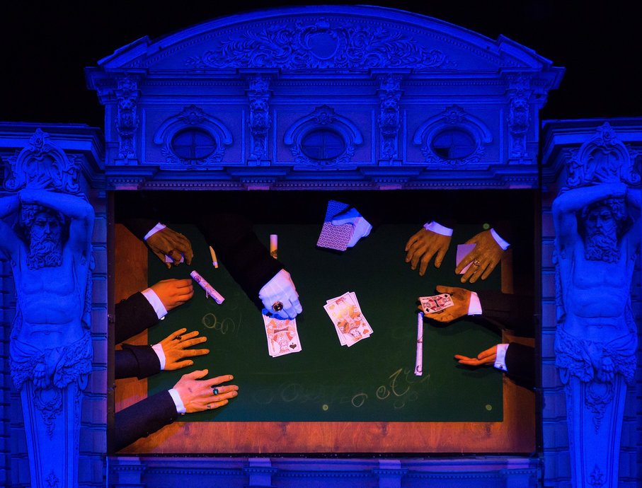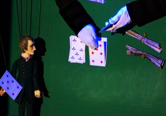 Петербургская готическая история о молодом человеке, у которого «профиль Наполеона, а душа Мефистофеля» — одно из самых мистических произведений русской литературы, и даже марионеткам с их утончённым нравом и природным чувством юмора нелегко справиться с тревожной мрачной аурой зловещего анекдота о трёх картах, непредсказуемостью судьбы, коварстве рока. Куклы забывают текст, запутываются в своих нитях, теряют голос. Поэтому авторы спектакля обратились за поддержкой к сонму петербургских литераторов, игроков за ломберным столом или по жизни. Билеты необходимо приобретать на каждого зрителя, вне зависимости от возраста.