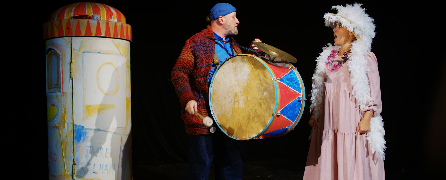 Два актёра, два разных темперамента, прямо на глазах у зрителей создают мир, в котором детская фантазия становится главным инструментом творчества.