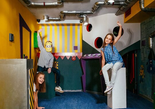 За основу квеста «Секретная фабрика миньонов KIDS» взят одноименный мультфильм. Несмотря на то, что игра заявлена как подростковая, процесс прохождения очень увлекательный и понравится даже взрослым. Просторная игровая локация позволяет свободно разместиться даже самой активной команде, а красочный реквизит и спецэффекты добавят эмоций и создадут особенное настроение! Квест отлично подойдет для праздника или дня рождения. Подростки проходят квест в сопровождении профессионального аниматора или взрослого. с 9 лет строго в сопровождении аниматора
