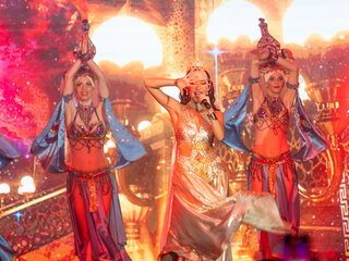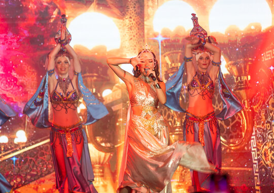 В шоу используются порядка 60 костюмов, эксклюзивная 3D графика для оформления сцены, множество спецэффектов и дизайнерская световая инсталляция. Вы погружаетесь в мир света и музыки уже с первых шагов входа в театр.
