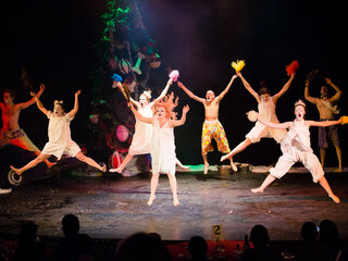 Ничто не может помешать новогоднему чуду ворваться в нашу жизнь и подарить чуточку волшебства. Приглашаем провести новогодние вечера в компании неунывающих Лицедеев! — Новый год в театре? — Интересней, чем кажется! Модернизированная новогодняя программа включает в себя новые уникальные и интерактивные номера, виртуозно переплетающиеся с классическими номерами театра «Лицедеи», артисты весь вечер общаются с залом, так что никто не рискует заскучать! Когда ещё вы сможете отпраздновать Новый год в театре? Думаем, сейчас — самое время! Театральный шарм вперемешку с новогодним настроением, конфетти и «Лицедейские» Дед Мороз и Снегурочка, настоящие клоунские чудеса и праздничная дискотека — всё ждёт вас в театре «Лицедеи»! Мероприятие идёт с одним антрактом. В составе исполнителей возможны изменения без дополнительного уведомления.