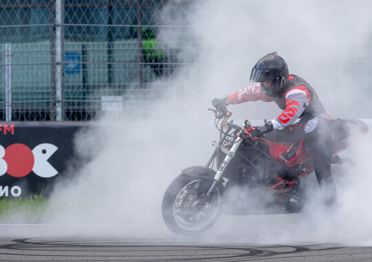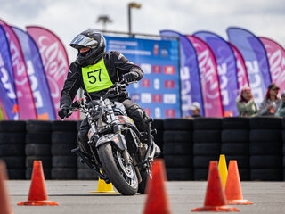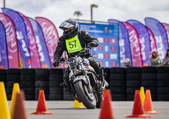 Ещё одно состязание мото-уикенда — мотоджимхана. Это не просто соревнования на точность управления и маневрирования, это искусство владения двухколёсной машиной, где каждый участник демонстрирует невероятное мастерство, точность и контроль. В отличие от традиционных гонок, здесь нет прямых линий и широких трасс. Вместо этого участники должны маневрировать между конусами, выполнять повороты на 180 градусов, восьмёрки и другие сложные элементы. Каждый промах или касание конуса добавляет штрафные секунды, поэтому важна не только скорость, но и чёткость.