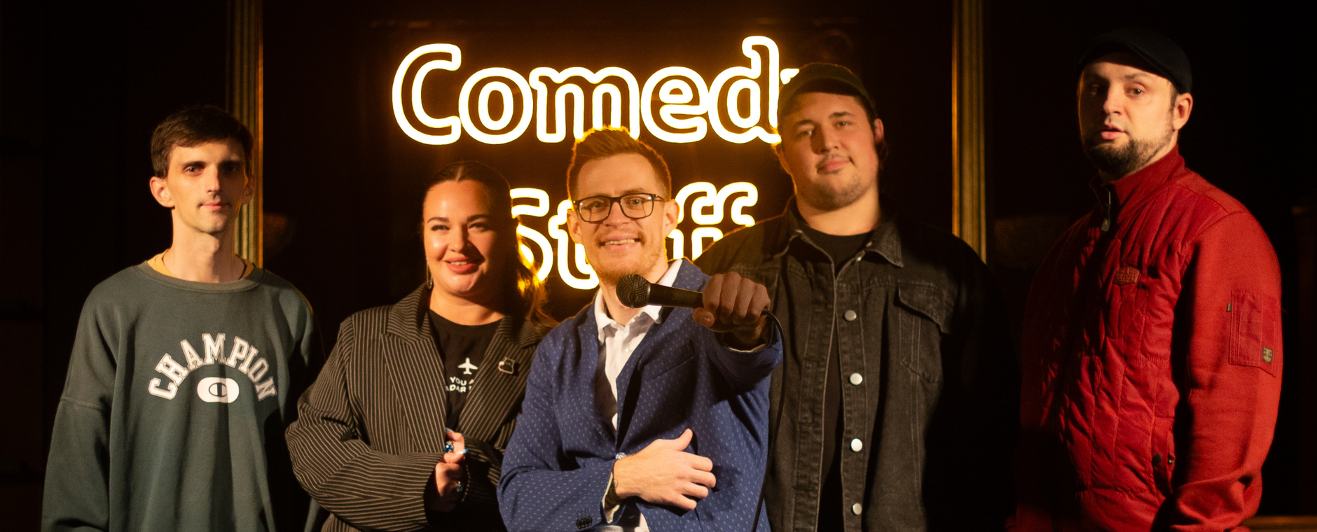 Перед вами выступят комики с ТНТ, НТВ, ЖКХ, ВДВ, M&M’s... Сразу предупреждаем, после наших мероприятий у зрителей болит рот от смеха. Извините заранее, пожалуйста.