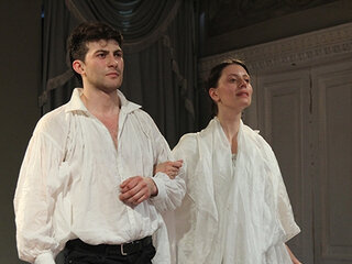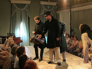 Безусловно, тема спектакля более чем актуальна сегодня: захват чужой собственности, чиновничий произвол, болезненная социальная несправедливость. Но постановка известного петербургского режиссера, лауреата Госпремии РФ Геннадия Тростянецкого прежде всего притягивает глубоким проникновением во внутренний мир главных героев – Владимира Дубровского и Маши Троекуровой, чей пронзительный дуэт воплощен великолепной и страстной игрой актеров. Благодаря своеобразию конструкции сценической площадки зритель максимально вовлечен в действие, перед его глазами проходит череда событий, воспоминаний самого Дубровского. Возмездие или прощение? Милость или наказание? Раскрытие этой темы, которая наряду с любовью и коварством является одной из основных в спектакле и, возможно, одной из самых главных в драматическом творчестве А. С. Пушкина, придает постановке высокое духовное звучание.