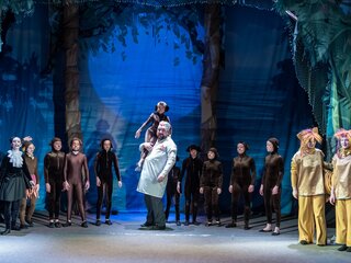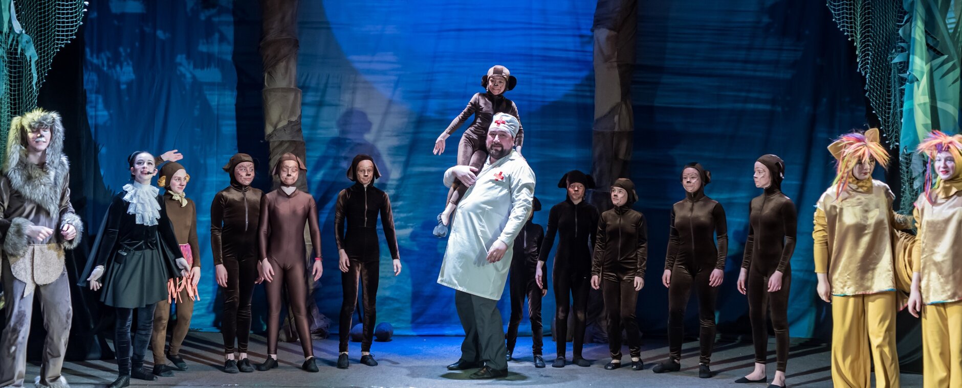 История о том, как в мирную жизнь доброго Доктора Айболита, который любил и лечил зверей, ворвался злой Шарманщик — переодетый Бармалей; и как животные и птицы (обезьянка Чичи, Собака Авва, попугай Карудо и другие) друзья доктора помогли вылечить обезьян в Африке. Спектакль о дружбе, смелости и отваге, которых нам так не хватает сегодня.