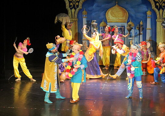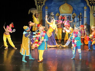 «Аленький цветочек» — это спектакль, полный таинственных превращений и волшебных открытий. Вместе с купцом, странствующим в поисках подарков для дочек, зрители путешествуют по заморским странам, знакомятся с их обычаями, культурой и диковинными дарами. Каждая новая страна — удивительная картина, яркая зарисовка с музыкой, пластическими и танцевальными номерами. В спектакле роскошные костюмы и декорации, много современной музыки, необычные сценические эффекты, оригинальный свет. Благодаря режиссерским находкам и актерскому исполнению, чудеса происходят прямо на наших глазах: бушуют волны, танцуют цветы в волшебном саду, меняется день и ночь, силы добра борются с силами зла — феи Добра, Красоты и Любви противостоят фее Ночи, Тьмы и Мрака… Наконец, вырастает дивный Аленький цветок и происходит чудо — чудо любви, добра и красоты…