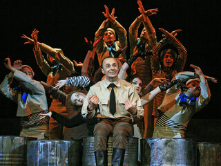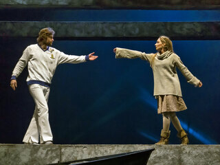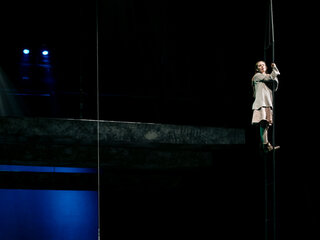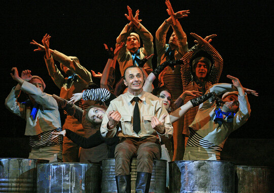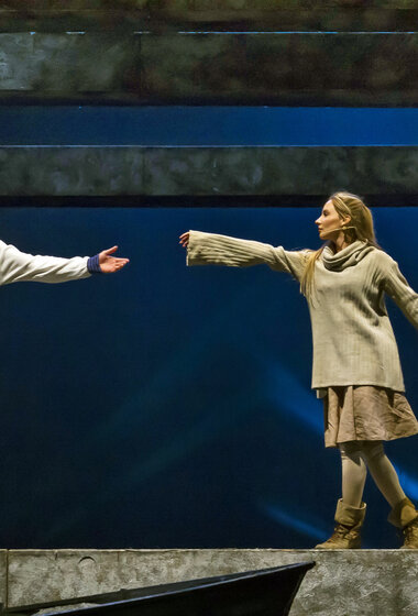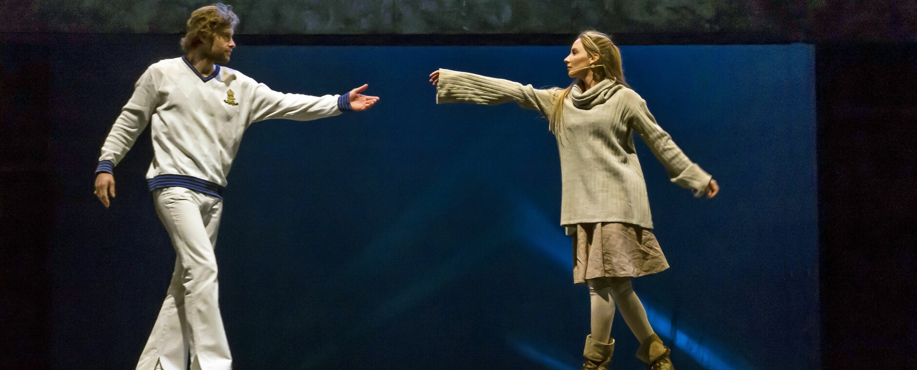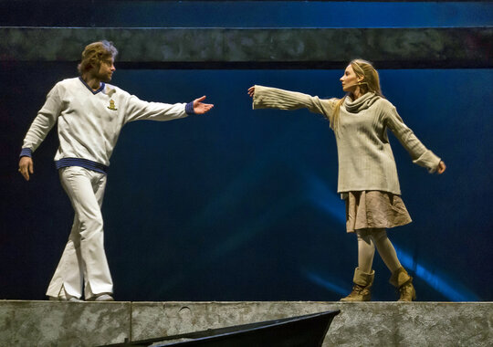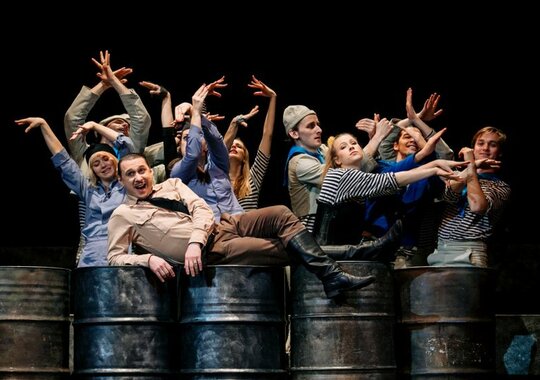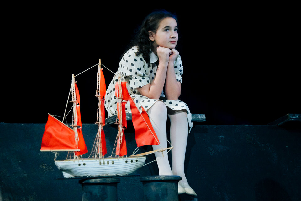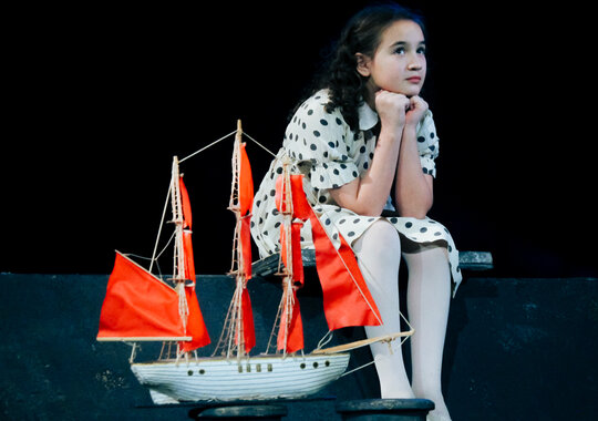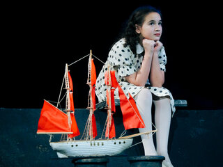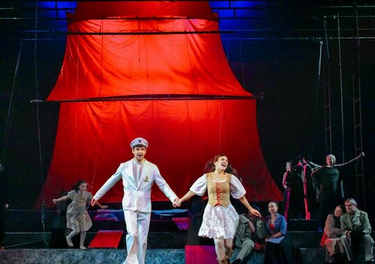 Знаменитую повесть-феерию Александра Грина поставил Раймундас Банионис, сын великого литовского артиста Донатаса Баниониса. Песни к спектаклю написал композитор Фаустас Латенас, многие годы создающий музыкальное оформление к театральным шедеврам Эймунтаса Някрошюса и Римаса Туминаса. Декорации не блестят и не мигают. Зрители попадают в прибрежную деревушку. Туда, где море встречается с небом, где рыбаки и моряки поют залихватские куплеты, а юная Ассоль ждет своего капитана Грея. Конечно же, в финале появляется фрегат с алыми парусами — парусами надежды. «Алые паруса» — удивительно тонкая, точная и яркая постановка о том, что каждый, независимо от возраста, может вырваться из повседневной суеты и исполнить свои мечты. И в этом нет никакого волшебства — надо только верить в чудо!