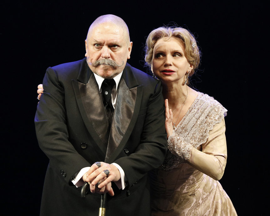 Мир героев Островского, в котором выпукло представленные пороки, а добродетели вступают в сложную игру и взаимосвязь, продолжает сатирическую линию репертуарной политики театра, в котором всегда важное место занимала социальная критика, представленная такими спектаклями, как «Свадьба Кречинского», «Визит дамы», «Тень» и «Дракон».