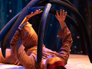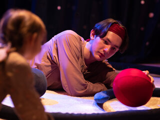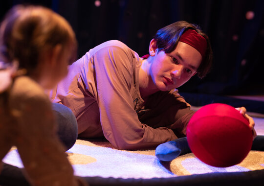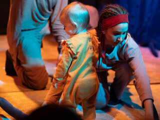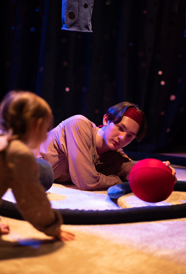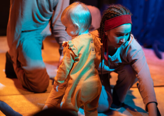 «Большое и маленькое» — в театре Karlsson Haus уже второй спектакль для «ползунков». Он для тех, кого в театр принесли на руках, и для тех, кто решился прийти сюда с ребёнком, делающим первые шаги, но пока не умеющим говорить.