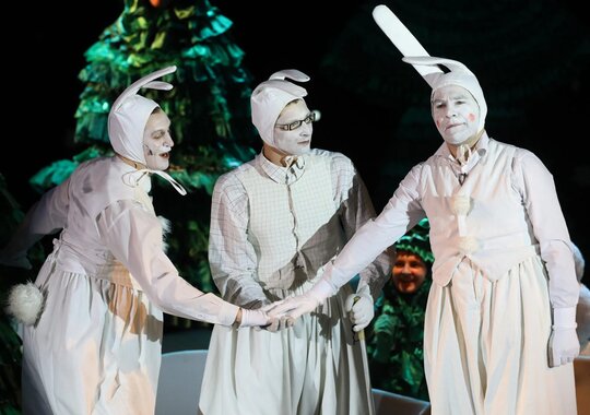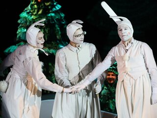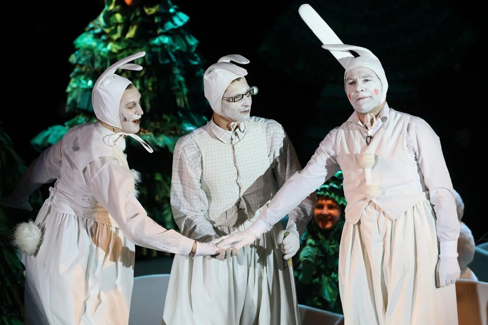 Спектакль — короткая история маленькой любопытной Ёлочки, успевшей познать счастье недолгого праздника и горечь забвения. Юной героине скучно на родной полянке, где всё ей кажется таким обыкновенным... Чтобы дать ей возможность взглянуть на ситуацию по-другому, авторы спектакля вводят в действие озорную команду «самых изобретательных, достойных и талантливых» зайцев-актеров «Странствующего театра Магических превращений». Их присутствие наполняет юмором и импровизацией историю, в ходе которой стремительно сменяются события, шумный город и огни на перекрестках превращаются в нарядную гостиную и огоньки рождественской ёлки... как вдруг чары Магического театра рассеиваются. И становится очевидно, что было мнимым и сиюминутным, а что осталось вечным и истинным. Билеты приобретаются на каждого зрителя вне зависимости от возраста.