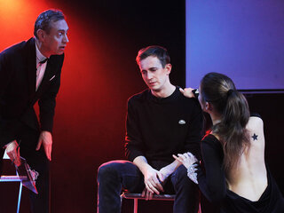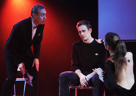Обыденная ситуация допроса превращается в многослойное психологическое расследование, парадоксальный детектив, изощрённый сеанс психотерапии. Пришедший в театр зритель начнёт вместе с героями спектакля — думать. О своём предназначении в мире, о свободе, о любви к Родине. И обязательно понадобится большое чувство юмора, потому что это просто необходимо — суметь открыто посмотреть вокруг, на себя, улыбнуться и в то же время задуматься.
