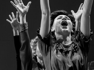 «Человек» — это спектакль-размышление на темы, поставленные книгой Франкла: о достоинстве и внутренней свободе, о проблеме выбора и умении остаться человеком в нечеловеческих условиях. Постановщик спектакля — Томи Янежич, словенский режиссёр, по мнению критиков, один из ведущих европейских режиссёров нового поколения.