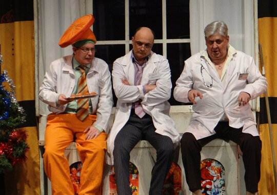 В гущу событий попадают жена, друзья, персонал клиники, пациенты и многие другие персонажи. В спектакле, помимо нелепых, гомерически смешных ситуаций и забавных положений, есть романтическая история любви, классический драматический треугольник и нежная история дружбы.