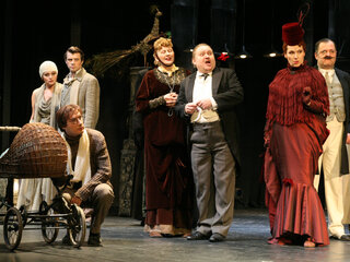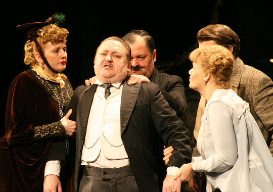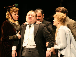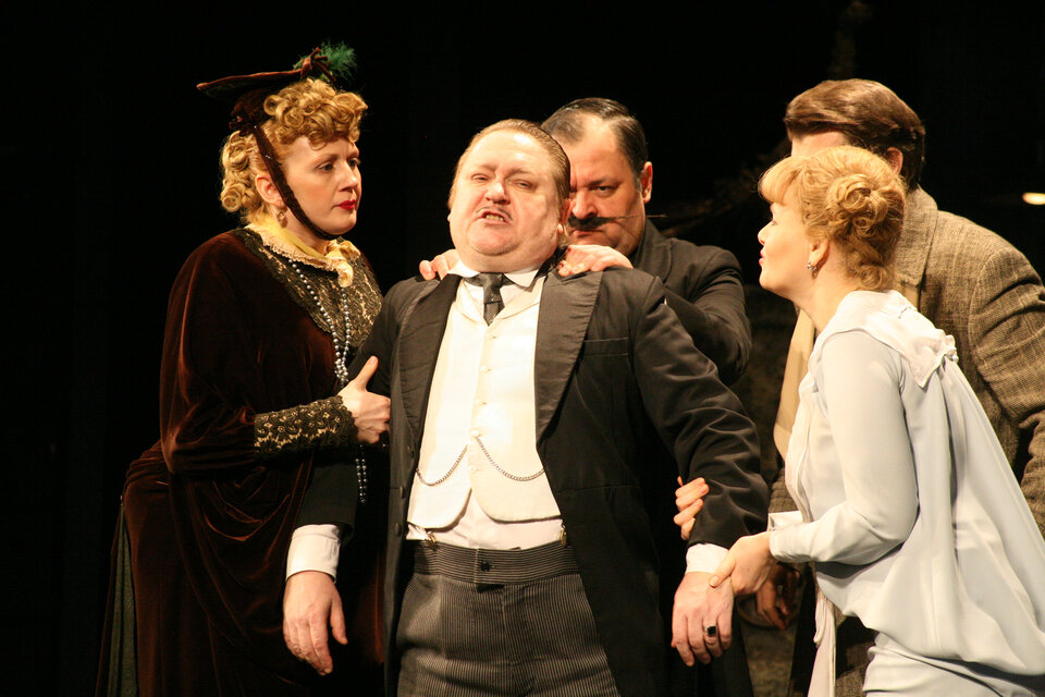 Югославский драматург Бранислав Нушич мастерски развивает традиции мольеровского «Мещанина во дворянстве», комедии положений, в которых все больше и больше запутывается главный герой, одолеваемый со всех сторон чужими женами, обаятельными мошенниками, назойливыми благотворительницами, напористыми свахами. В спектакле Татьяны Казаковой эти колоритные персонажи сливаются в пестрый, крикливый, требовательный хор, грозящий свести несчастного Животу с ума. И только любовь способна разрубить клубок противоречий.