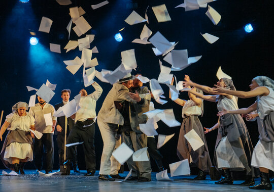 «Доктор Живаго» — это спектакль по одноименному роману про неидеального героя, который вопреки, а не благодаря эпохальным, трагическим событиям с 1917 по 1922 год сумел стать лучшей версией себя. Поэзия здесь выступает важнейшим действующим лицом, философия условием существования, а место действия — погост.
