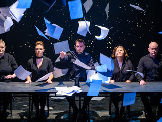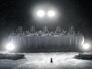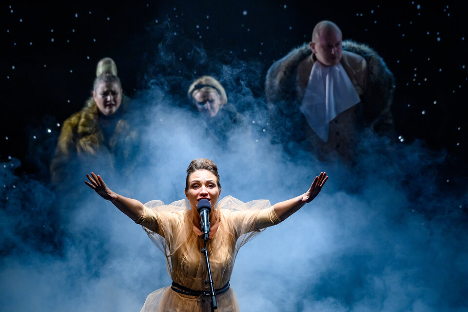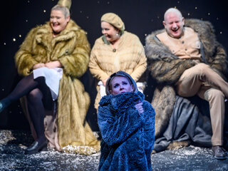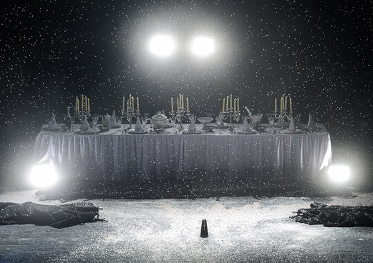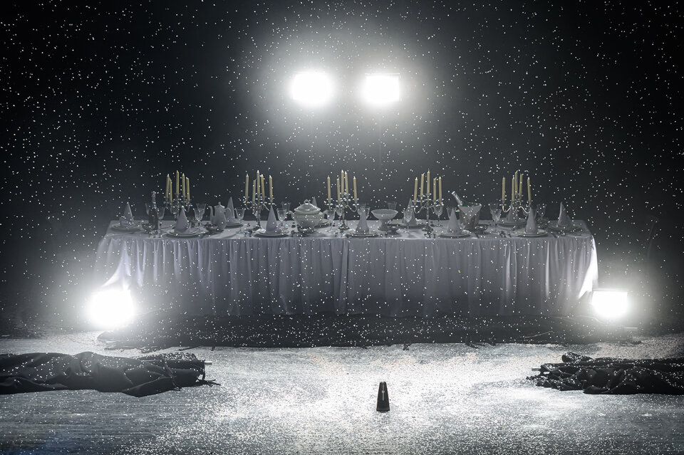 На большой сцене театра постановка одной из самых популярных пьес американского драматурга ХХ века Торнтона Уайлдера «Долгий рождественский обед».
