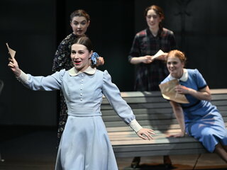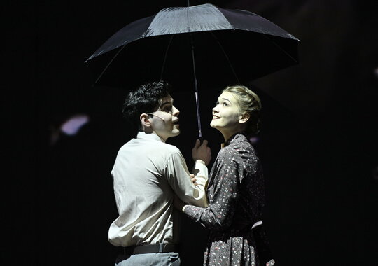 Пространство спектакля пронизано памятью того времени и звучит словно реквием по всему, что было разрушено — по судьбам людей, по первой любви, по возможности счастливой жизни.