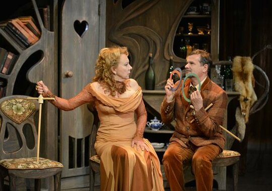 А режиссёр и актёр Евгений Баранов (поставивший на сцене театра имени Андрея Миронова уже пять спектаклей: «Нахлебник», «Сны в летнюю ночь», «Грабёж», «Паола и львы» и «Обыкновенная история») увидел в «Двух часах...» точные параллели с сегодняшним днём. Этим, признаётся, пьеса Амфитеатрова его и покорила.
