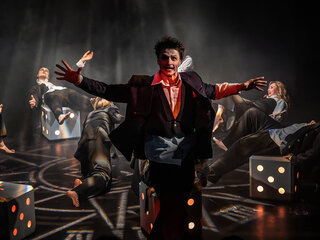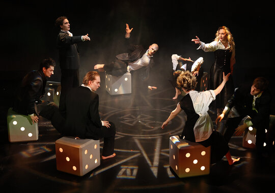 Режиссёр и хореограф Евгений Козлов исследует проблематику романов Фёдора Достоевского «Игрок» и «Преступление и наказание» в синтезе театральных форм: здесь есть опера, танец, физический театр, и конечно же — драматургия текстов Достоевского.