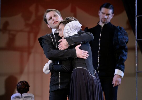 Артисты театра «Пушкинская школа» блестяще владеют стихом, поэтому перевод Бориса Пастернака звучит здесь, не теряя ни силы, ни смысла, ни музыки.
