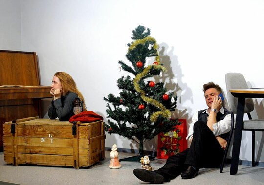 Это спектакль о звонке, который изменил жизнь двух людей. Только один из звонивших находится в Новогоднюю ночь в современном Петербурге, а другой — в блокадном Ленинграде. История трогательная, нежная, грустная, но и вселяющая надежду. В какой-то момент зрители всплакнули, но поводов для улыбки было не меньше. Этот случайный звонок помог герою переосмыслить свою жизнь, а героине пережить блокадную зиму.