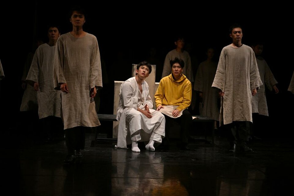 Спектакль на китайском языке с русскими субтитрами. Сценическая версия трагедии А. С. Пушкина (перевод на китайский язык Дай Цихуана). Название спектакля «Играем «Бориса Годунова» не случайно. Обращаясь к трагедии А. С. Пушкина, его создателям хотелось, прежде всего, показать, что игровая природа театра способна раскрывать самые серьёзные темы, будь то исторические события или нравственные муки отдельного человека. В центре спектакля — актёры, скоморохи, разыгрывающие на глазах зрителей те или иные повороты пушкинского сюжета. Магическое «если бы» становится главным законом представления. Русскую трагедию играют китайские актёры — студенты 4 курса. Это позволяет периодически использовать китайские художественные приёмы, ибо вопросы, на которые пытается ответить Пушкин, — общечеловеческие, общемировые, не связанны именно с Россией XVII века. К тому же, следуя традиции Шекспира, Пушкин в трагедии показывает много комических моментов, которые оттеняют и проявляют главный конфликт: человек и Бог, человек и судьба. Перевод трагедии на китайский сделан специалистом Дай Цихуаном в 1982 году. Как и многочисленные переводы стихов Пушкина на любой иностранный язык, этот перевод выполнен прозой. К тому же в нём есть большое количество смысловых ошибок, влияющих на сюжет. Поэтому при кропотливой работе над текстом студент-режиссёр Лян Сяо и переводчик Валерия Цуканова сделали редакцию трагедии, чтобы помочь, прежде всего, китайским зрителям, лучше понимать происходящее на сцене. Спектакль идёт без антракта.