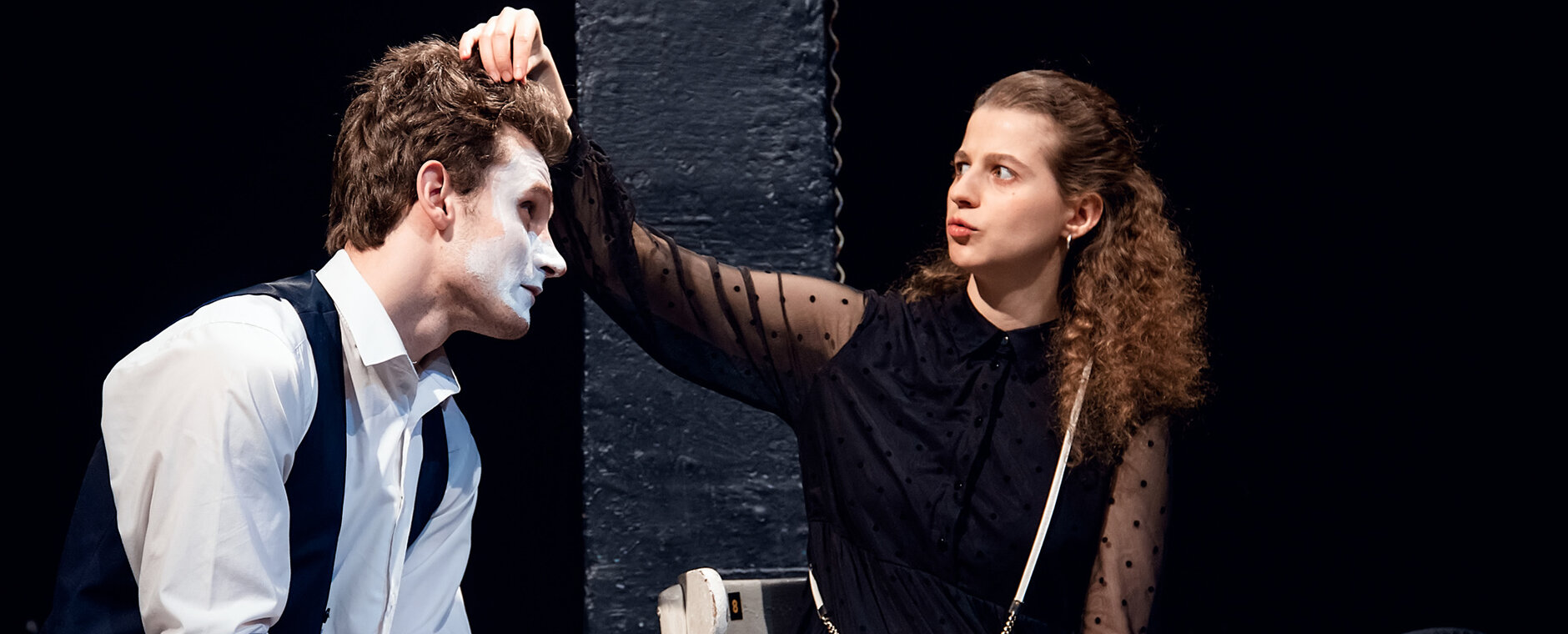 С первого взгляда пьеса «Я монстр» кажется густо населена персонажами и при обращении к ней театр вправе использовать эту возможность. Но по сути перед нами исповедь девочки-подростка. Голоса других героев вклиниваются в этот развивающийся крещендо от сцены к сцене самобичующий монолог исключительно по воле вспоминающей о них Ирки.