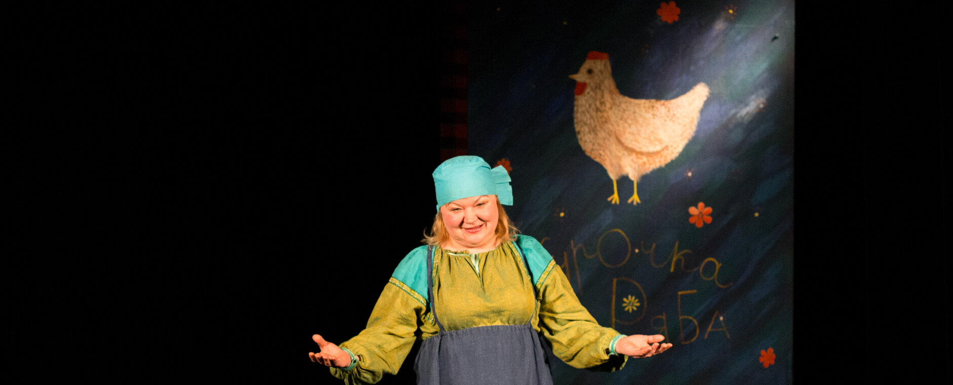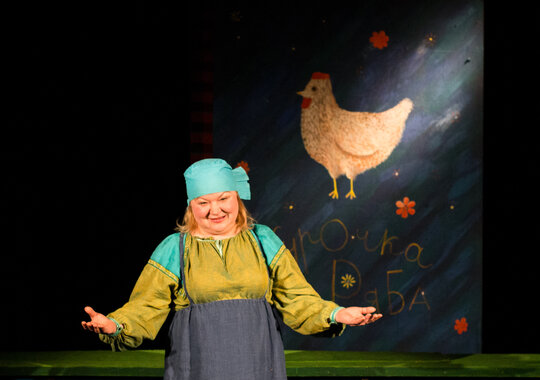 Работая над спектаклем по мотивам русской народной сказки о Курочке Рябе, постановочная группа следила за тем, чтобы все, что происходит на сцене не просто увлекало, но и интриговало. В результате получилась постановка, в которой на фоне красочных декораций играют многофункциональные куклы. Они разговаривают, ходят по сцене, моргают глазками, а быстрая смена действий не дает маленькому зрителю отвлечься ни на минуту.