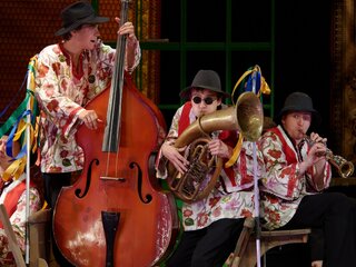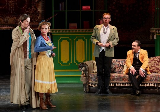 Всё смешалось в этом спектакле: русский дух и балканский колорит в стиле Кустурицы, французский шансон вперемежку с песнями «Rammstein» и «Queen», немецкий вальс и шотландские танцы. Зрителя ждут харизматичные персонажи в красочных костюмах от главного художника театра Яны Штокбант и, конечно, искромётные диалоги Бранислава Нушича, который прямо на глазах всё гениально запутает, чтобы потом мастерски всё распутать.