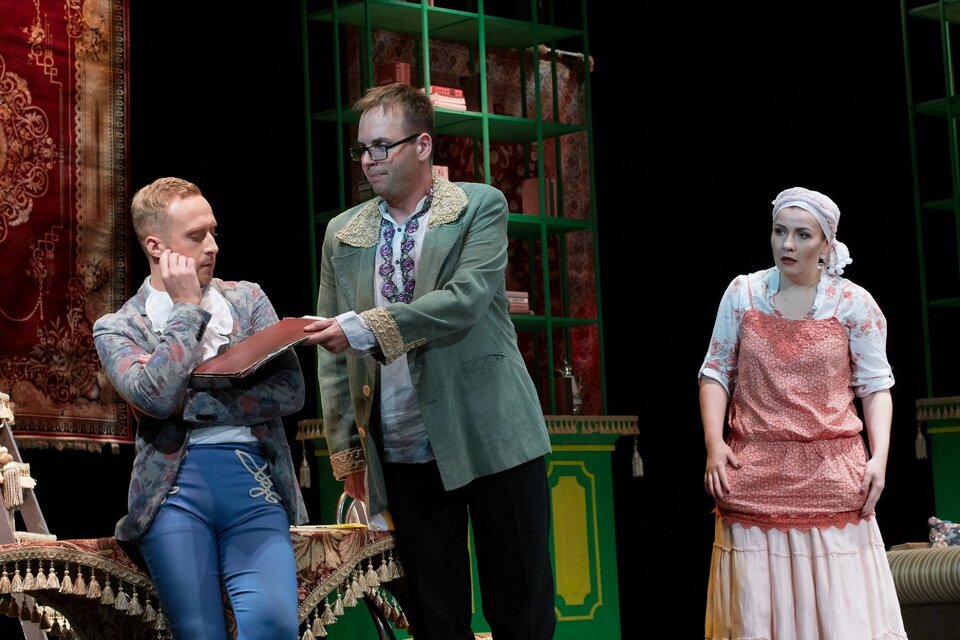 Всё смешалось в этом спектакле: русский дух и балканский колорит в стиле Кустурицы, французский шансон вперемежку с песнями «Rammstein» и «Queen», немецкий вальс и шотландские танцы. Зрителя ждут харизматичные персонажи в красочных костюмах от главного художника театра Яны Штокбант и, конечно, искромётные диалоги Бранислава Нушича, который прямо на глазах всё гениально запутает, чтобы потом мастерски всё распутать.