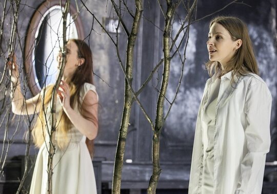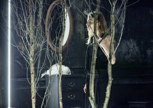 Меньше всего в спектакле Андрия Жолдака стоит, сидя сегодня в зрительном зале, искать театральный пересказ сюжета. Есть спектакли — проза. Есть — поэзия, где действуют свои законы ассоциаций. Мадам Бовари» Жолдака — это театральная поэзия. Такую сценическую поэму могла бы написать современная Марина Цветаева. Это сублимация любви, вольное драматическое сочинение о тайнах и страстях, бушующих в душе женщины, в какое бы время и где бы она не жила — в провинциальной Франции XIX века или в коммунальной квартире на Невском проспекте в Петербурге. Движению душевных изломов, освещению самых тайных уголков души, конфликту души и разума, чувственным переливам любви посвящён этот страстный, мистический и красивый спектакль.