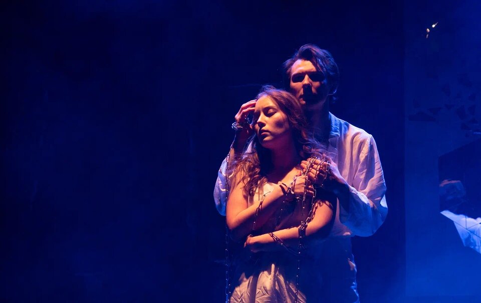 Современное авторское прочтение драмы Лермонтова «Маскарад». До многочисленных переписываний под давлением цензуры пьеса называлась «Маскерад», через «Е». Так нравилось автору, так хочет и режиссёр спектакля Екатерина Павлова. В спектакле всего четыре героя, только главные действующие лица. В буквальном смысле скованные одной цепью. Сложный Арбенин, простая Нина, легкомысленный Звездич, отягощённая неясными обстоятельствами Штраль. Даже не пытаясь разобраться в себе, они калечат всё живое рядом. Что из этого получится, совсем скоро узнаем. Обратите внимание! В спектакле используются стробоскоп и дым-машина.