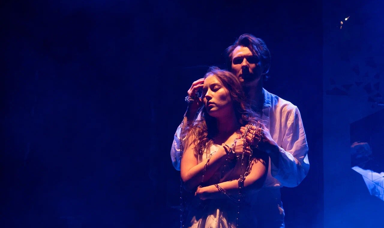 В спектакле всего четыре героя, только главные действующие лица. В буквальном смысле скованные одной цепью. Сложный Арбенин, простая Нина, легкомысленный Звездич, отягощённая неясными обстоятельствами Штраль.